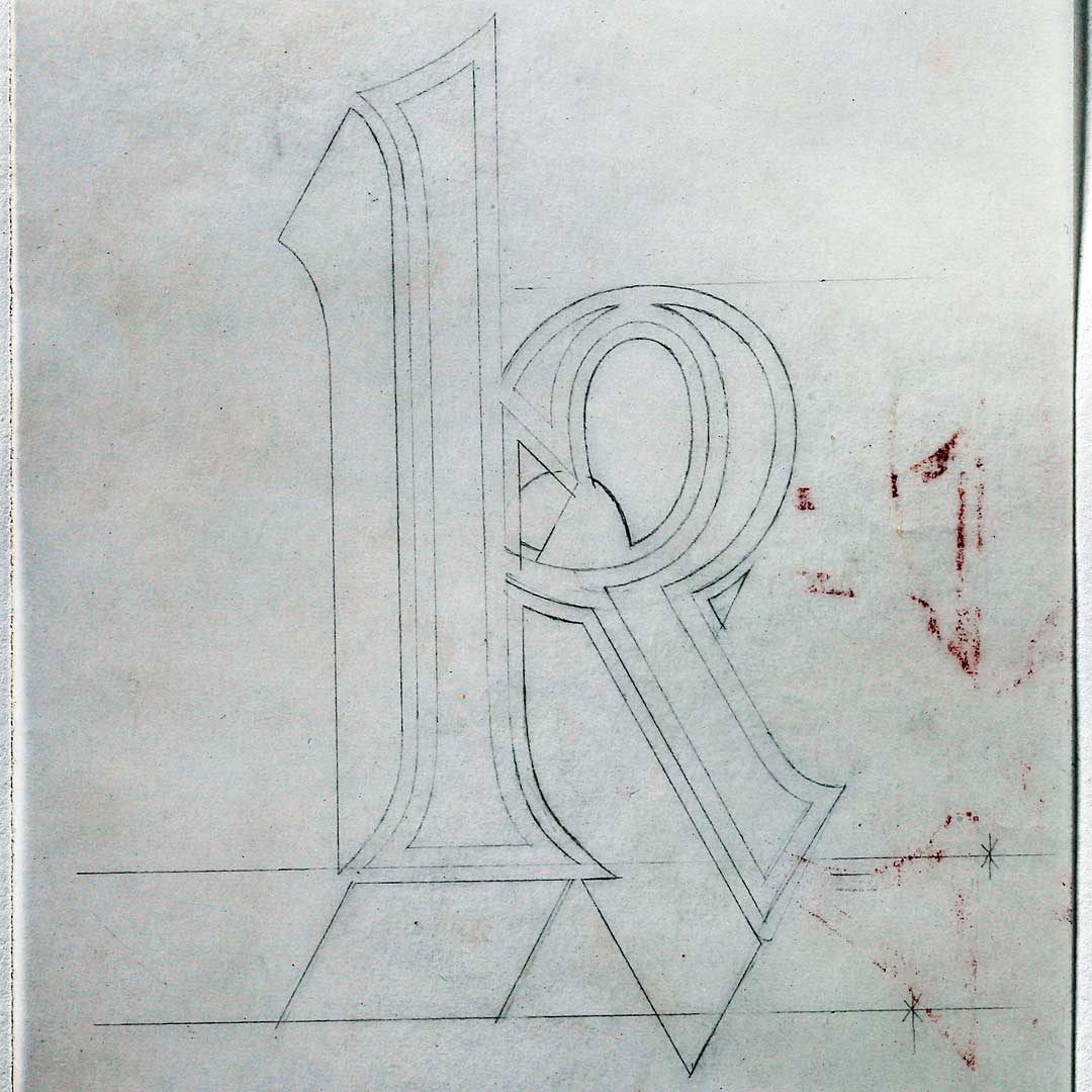 A pencil sketch of the Proteus lowercase ‘g’.